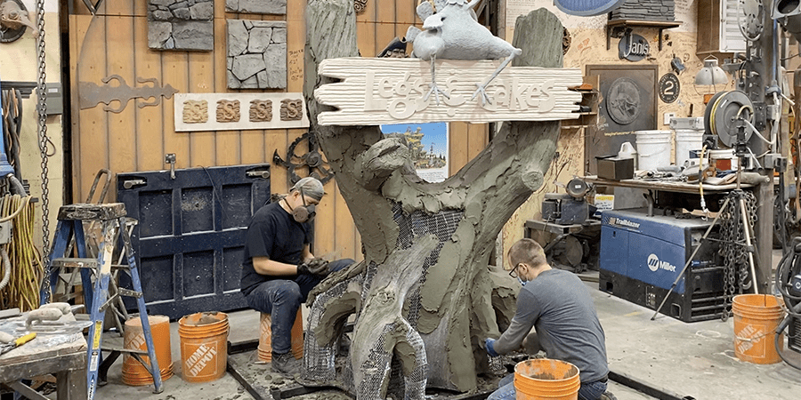 I started building creative projects for our kids when they were small but my tools and skills were rudimentary at best. I had absolutely no idea how to make permanent and durable features. I had so very much to learn and I wasn’t giving up. Over time I slowly built up my skills, learning largely through hands-on experience. I learned to draw, weld, fabricate, sculpt, paint and most importantly figure out how to solve complex problems. I filled our dumpster with projects that did not work many times. I learned much in the process. Gradually, our jobs became larger and more creative. Our reputation grew and spread far and wide. From time to time, by chance I would meet someone who would share some tidbit of knowlege and experience which I appreciated greatly.