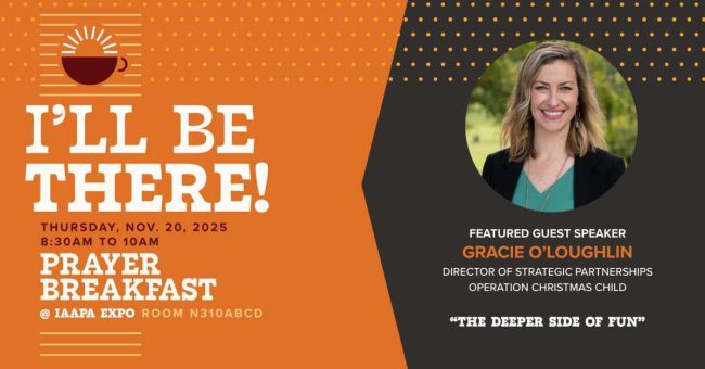 Prayer Breakfast at IAAPA Expo Details & Registration I’m excited to share that the annual Prayer Breakfast at IAAPA Expo will be held on Thursday, November 20 from 8:30–10:00 AM at the Orange County Convention Center – North Concourse during IAAPA Expo. Save the date — reservations coming soon! This year’s keynote speaker is Gracie O’Loughlin, Director of Strategic Partners at Operation Christmas Child. With the theme “The…