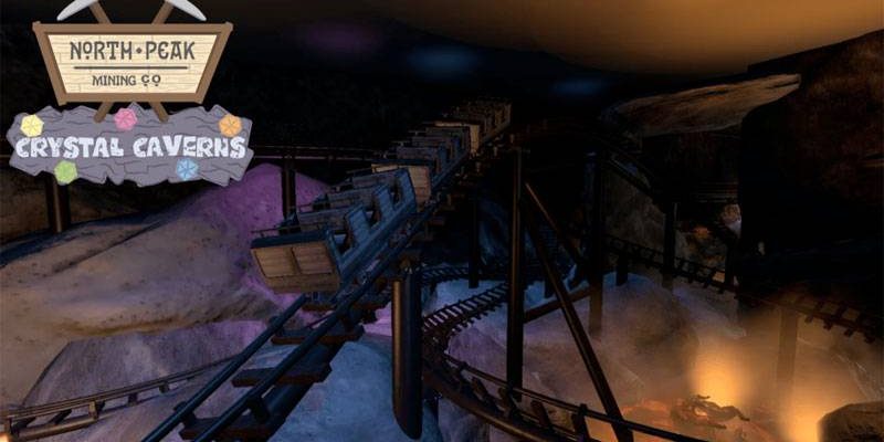 Twist and turn your way through the mysterious North Peak Mines on Crystal Caverns, a family-friendly, dark ride coaster experience past enchanting creatures and through glittering grottos.