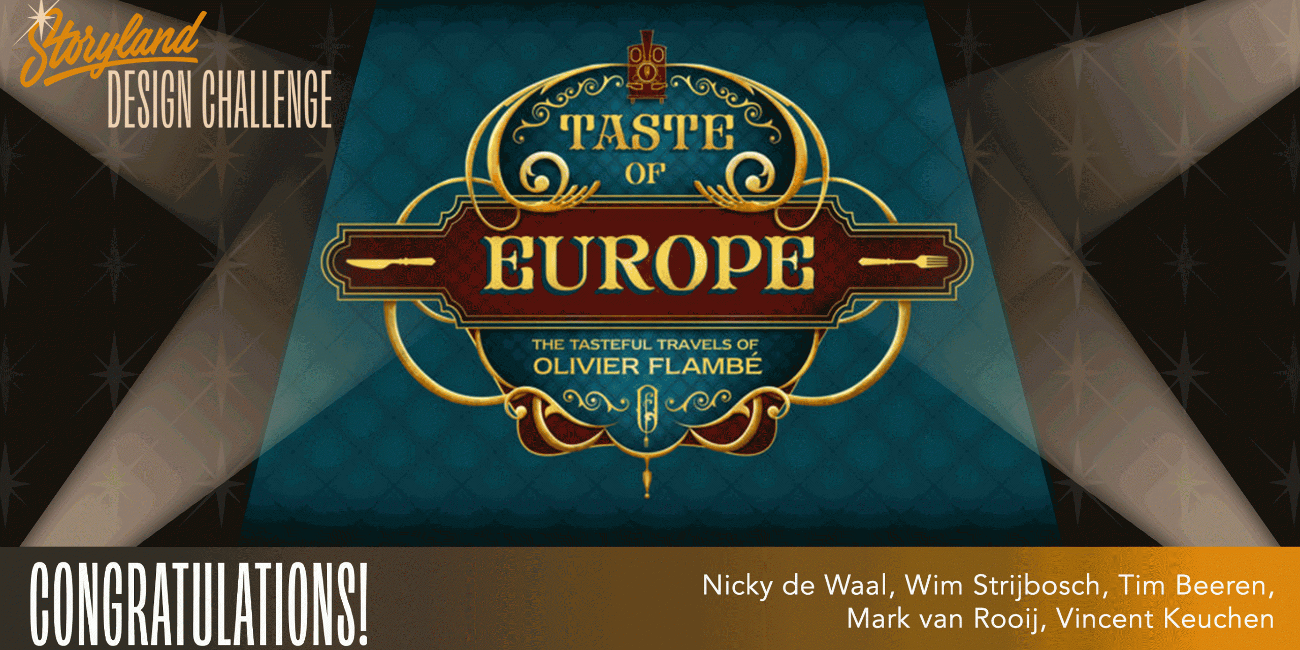 The winning entry was Taste of Europe: The Tasteful Travels of Olivier Flambé by Netherlands-based team Nicky De Waal, Wim Strijbosch, Tim Beeren, Mark Van Rooij and Vincent Keuchen. Taste of Europe is an attraction that sends guests on a flavour-collecting journey across scenes from turn-of-the-century Europe.