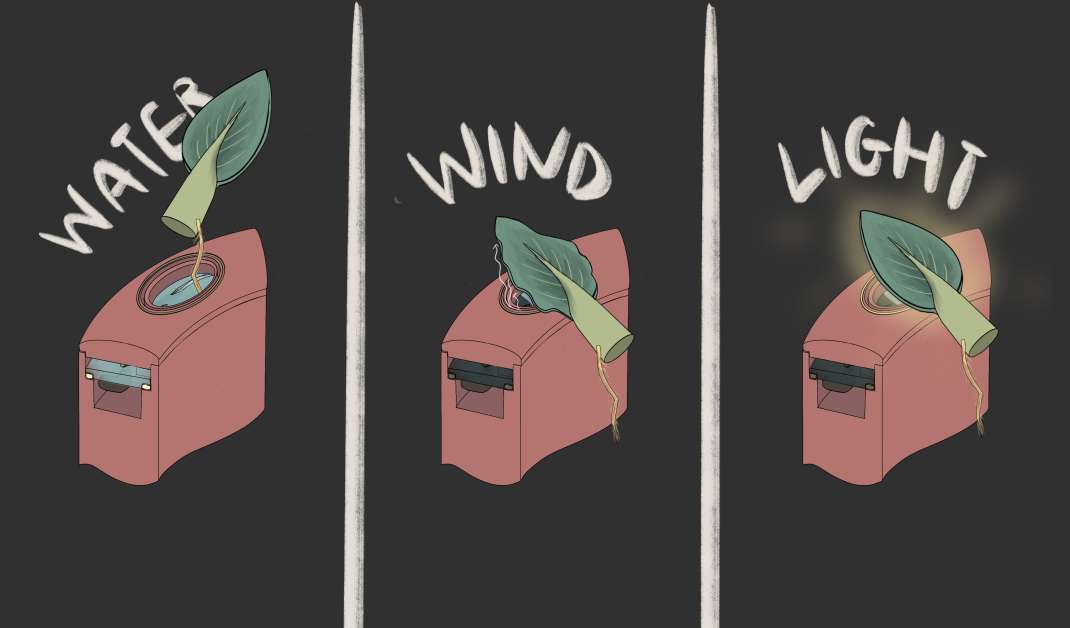 To simulate how the plant absorbs water, light shined through acrylic is used to mimic water instead of using actual water to allow for ease of maintenance and ensure that no electronics are in danger of being affected by water.