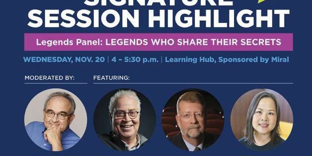 The Legends Panel will be held on Wednesday, November 20 from 4–5:30 PM at the Learning Hub