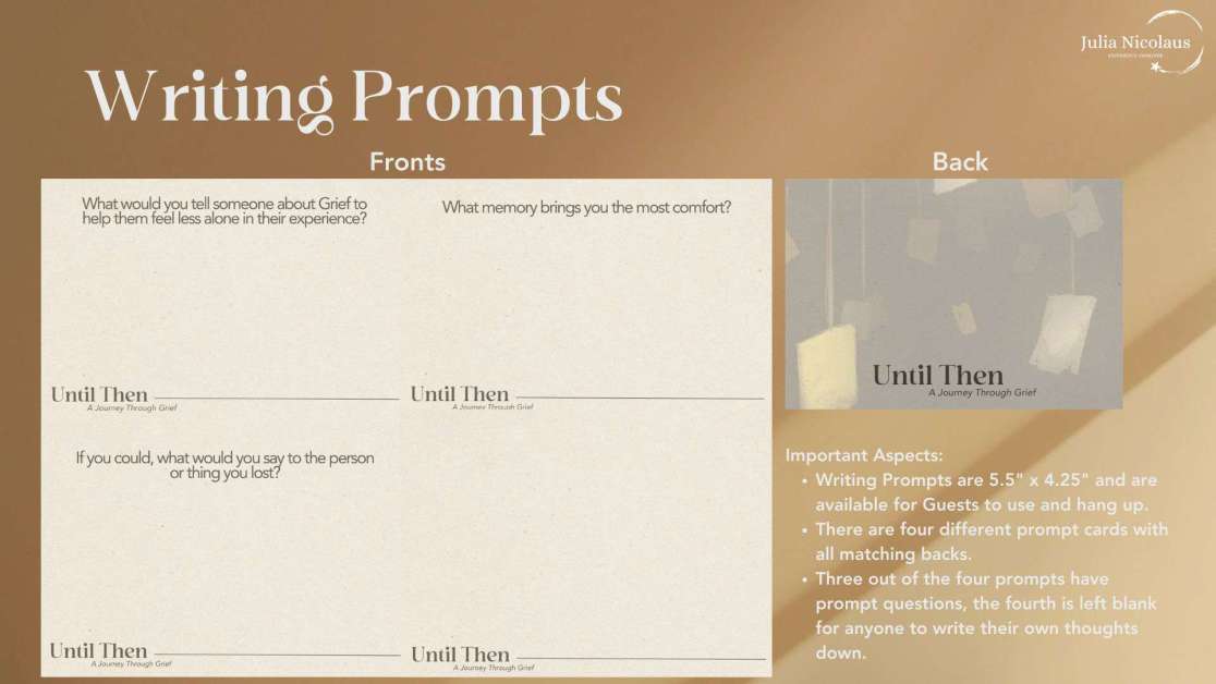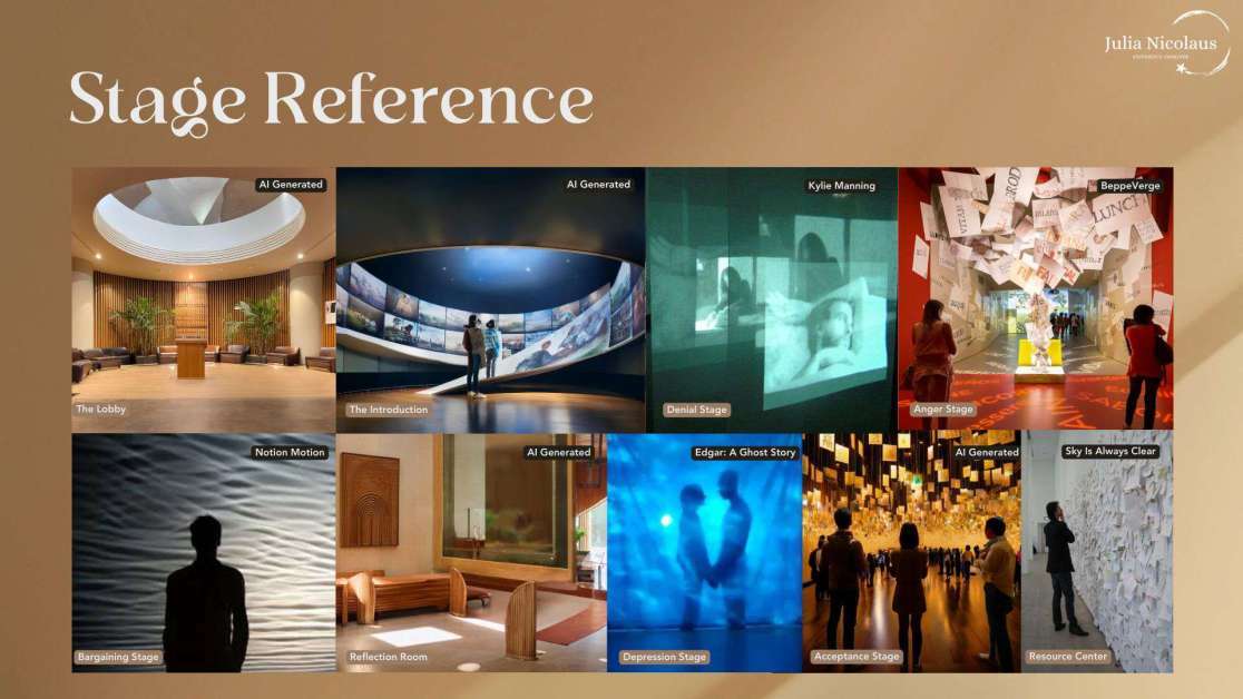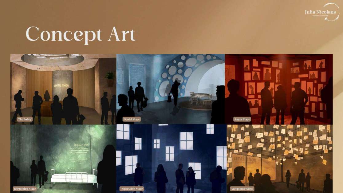 “Until Then, a Journey Through Grief is an immersive art-installation museum experience that invites guests to explore the five stages of Grief through the stories of three individuals’ experiences of losing a loved one. Their authentic narratives will be expressed through a series of interconnected exhibits designed with immersive environments and cutting-edge technology. Until Then gives guests the unique opportunity to walk along someone else’s harrowing journey to foster empathy and awareness for the shared human experience of Grief.”